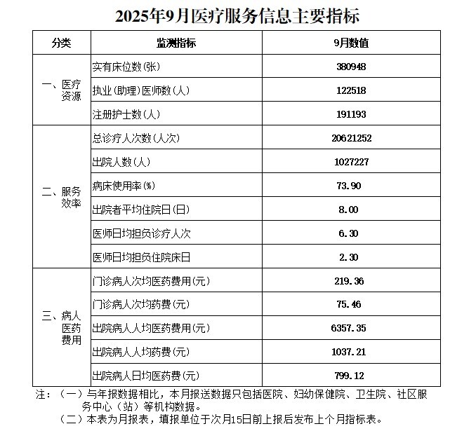 2025年9月份医疗服务信息发布指标表