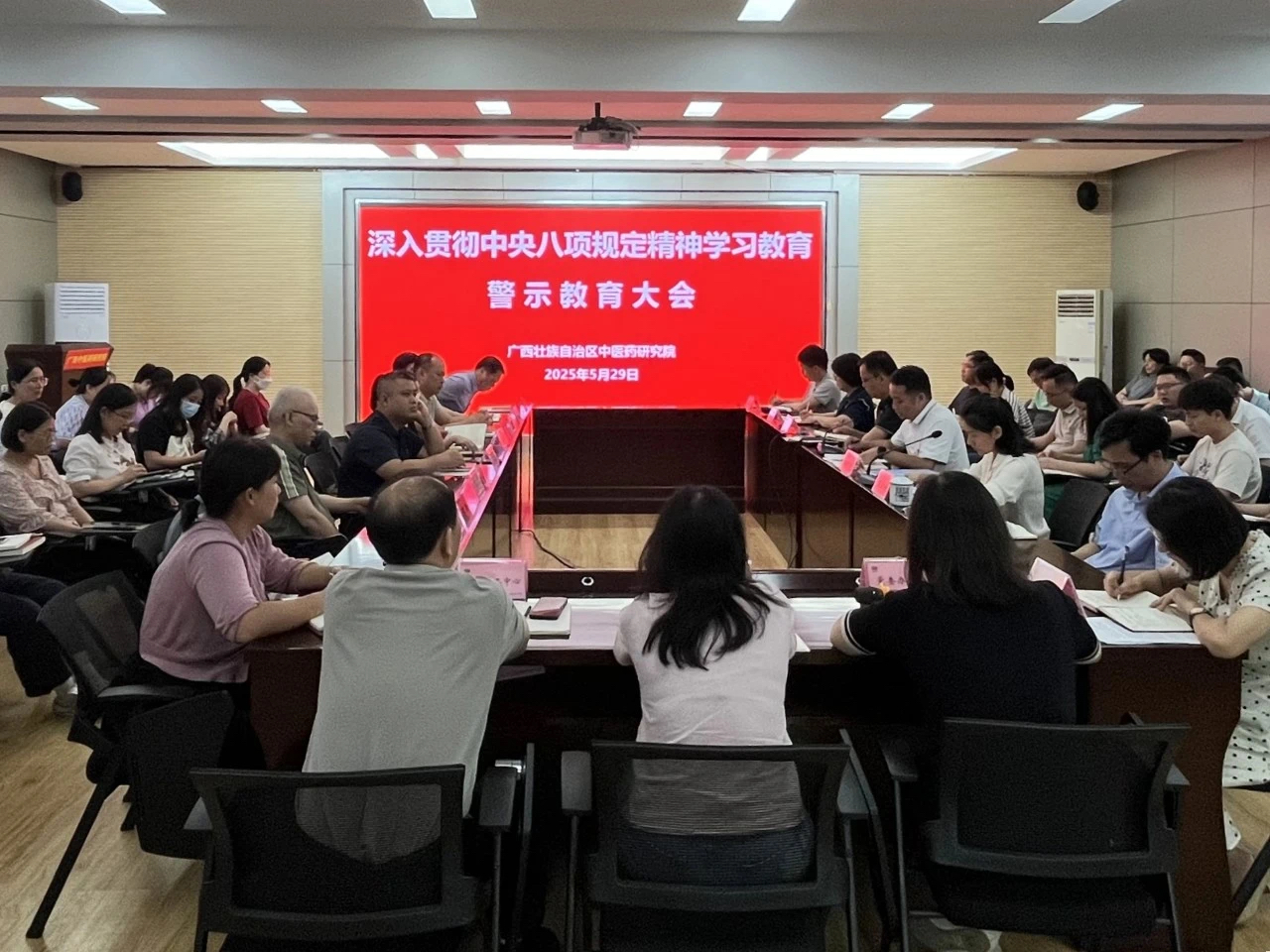 5月29日,广西中医药研究院召开深入贯彻中央八项规定精神学习教育警示教育大会,传达上级会议精神,筑牢贯彻中央八项规定精神坚固防线。院党委书记,院长赖克道出席会议并讲话,党委委员、纪委书记覃婷婷主持会议。