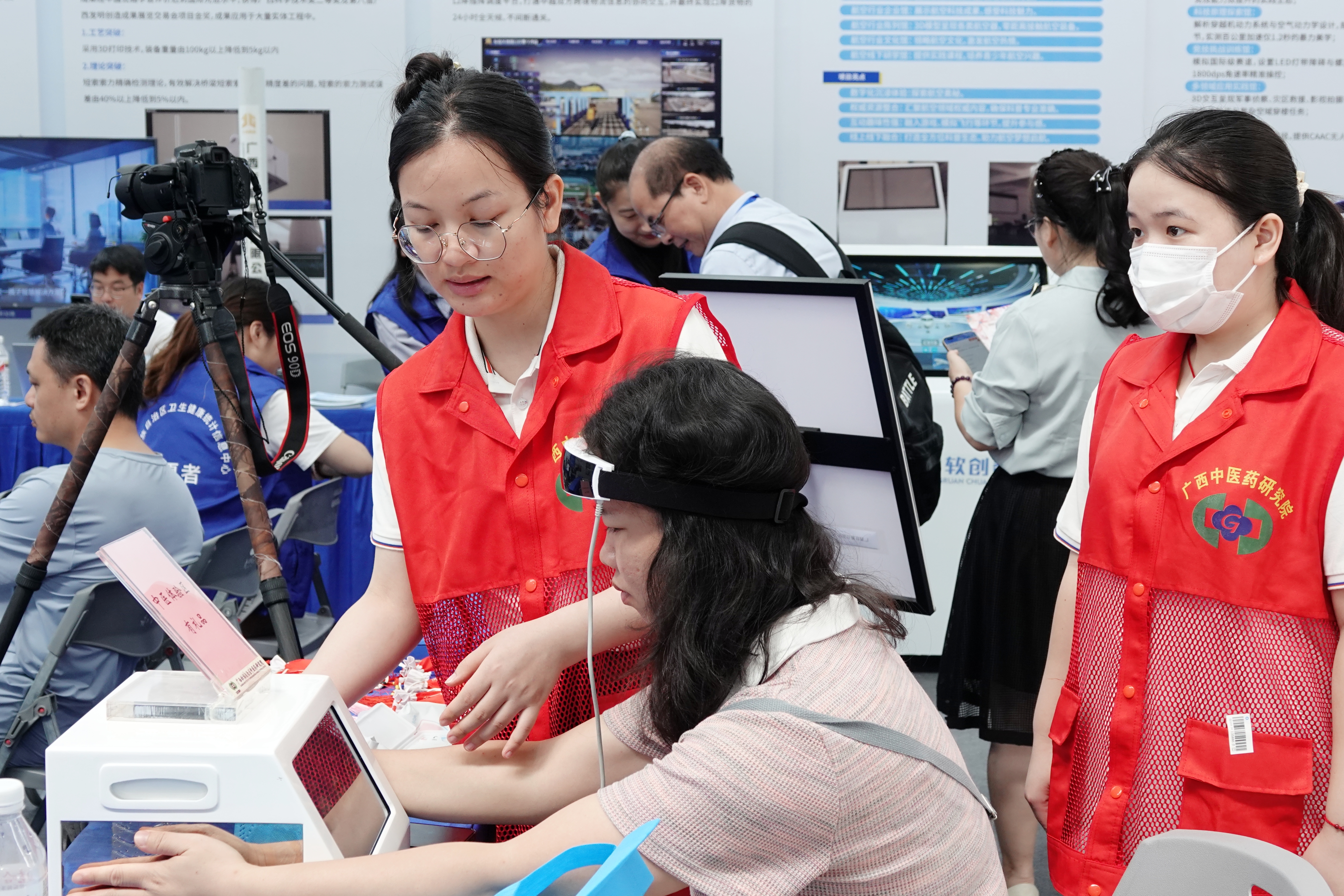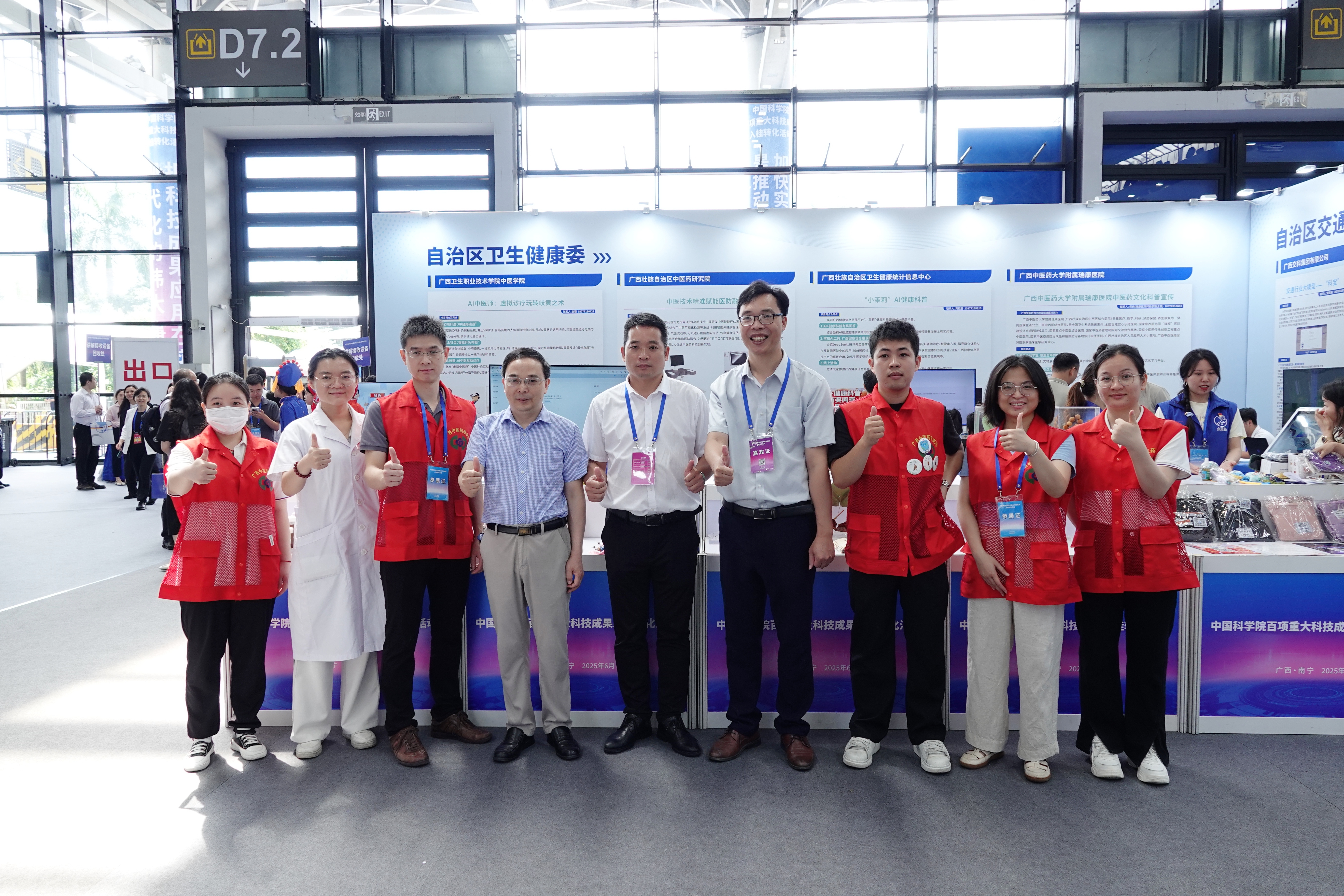 展会期间,自治区党委常委、自治区副主席卢新宁、自治区相关部门及中国科学院领导莅临研究院展位参观指导。赖克道向参观人员详细介绍了研究院在中医药研究领域的最新进展,重点汇报了包括联合研发的中医智能评估系统、中医AI大脑与智能体服务平台、中药药食同源饮品、大健康产品等代表性成果,积极宣传推广“桂十味”“桂药膳”“桂制剂”,提升品牌知名度。