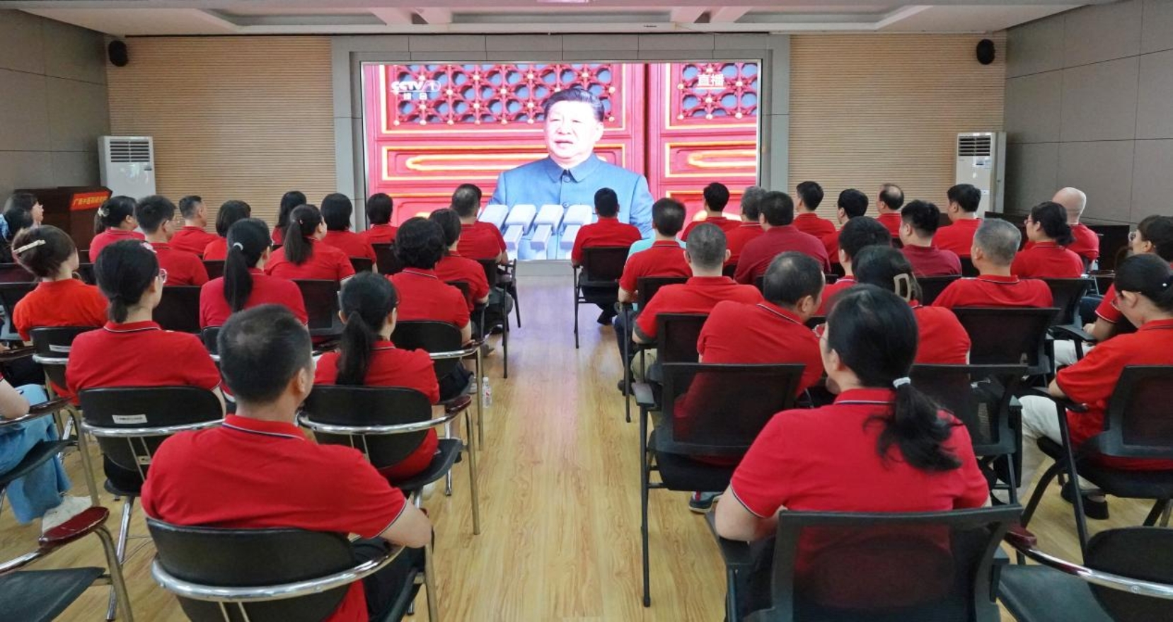 9月3日,北京天安门广场礼炮轰鸣、战鹰翱翔,纪念中国人民抗日战争暨世界反法西斯战争胜利80周年大会隆重举行。广西中医药研究院领导班子成员、中层干部、团支部委员、工会委员以及全体在职党员集中观看大会直播,共同见证这一承载民族记忆、彰显大国力量的历史时刻。