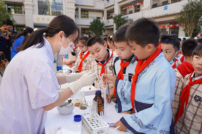 青蒿素提取实验、中药香囊制作体验、中药网红奶茶、中医变装体验……10月31日,由南宁市卫生健康委员会、南宁市中医药管理局主办,南宁市中医医院承办的南宁市第一届中医药文化节走进南宁市桂雅路小学,学生们触摸中药、品尝药膳、制作香囊,推动中医药壮瑶医药文化与国民教育融合,普及适宜青少年掌握的中医养生保健知识。