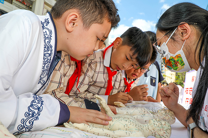 当天,南宁市中医医院还设置了“一株中药是如何从田野到病人手中的”“神农辨药尝百草”“中药香囊制作体验”“药食同源:舌尖上的中医药美食”等12个展位,让学生在活动中能够看得见中医药文化历史,摸得着身边的中药,尝得到中药样品的“滋味”。