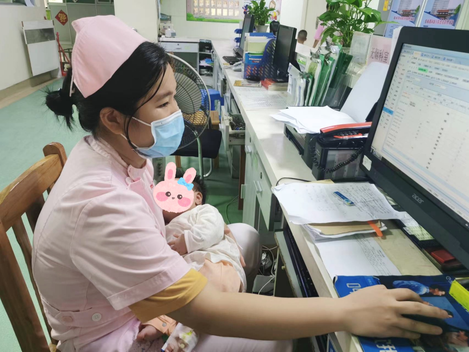 2022年12月的一个冬夜,发热门诊来了一位满脸焦灼的母亲,怀里抱着11个月大的患儿来到北海市中医医院。患儿当日出现了哭闹不安、高热、抽搐等疑似新冠感染症状,母亲十分担心。儿科医师林秀梅接诊该患儿,并立即予以抢救,待患儿平稳后为患儿安排入院。次日凌晨,患儿核酸结果呈阳性。住院期间,肖潇主任、莫雪莹主任、莫永琳医生每日查房,调整治疗方案,由于患儿母亲也多有不适,医护人员便轮流照顾患儿,喂奶、换尿不湿等,在以中医特色为主的治疗后,患儿康复出院,并对医护人员表示感谢。