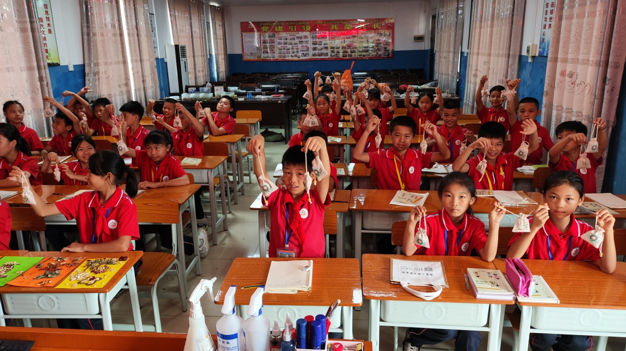 在蒙公乡古山小学里,医院治未病科医师用通俗易懂的语言、图文并茂的方式为同学们讲解“中医的起源、中医诊断方法、中医的治疗方法、广西道地药材”等中医基础知识。同学们兴趣盎然、积极踊跃回答医师提出的问题。活动现场,医务人员还向同学们讲述了香囊的历史渊源、制作方法以及香囊的作用,带领同学们亲手制作香囊。