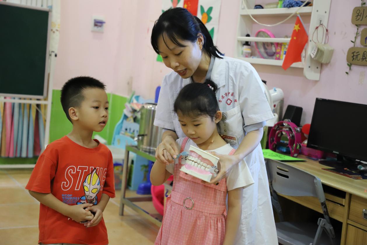 在木格镇西区幼儿园,医院的医务人员向小朋友们介绍日常生活中的健康知识以及如何辨识中草药,并指导小朋友们制作中药材贴画。小朋友们在医务人员及老师的指导下,发挥丰富的想象力,以中药材作“画笔颜料”,采用拼、贴、粘的方法,创作出了一幅幅独具特色的画作。此外,口腔科医师用活泼生动的语言向小朋友们讲解了正确刷牙的方法以及如何保护牙齿等知识,引导孩子们更好地保护自己牙齿。
