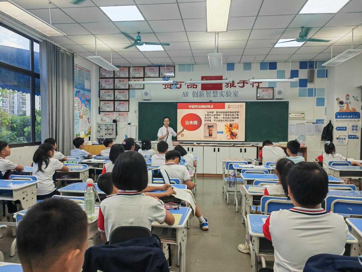 金秋九月,南宁市桂雅路小学四年级的课堂里传来阵阵药香。南宁市中医医院药学部党支部的药师们再次走进校园,为孩子们带来《探秘彩虹中药王国》《身边的中药》等特色课程。据悉,这是该党支部连续第二年开展中医药文化进校园活动,13位资深药师组成的授课团队中,既有全国中药特色技术传承人才韦光华,也有广西中药传承骨干人才周金艮、刘睿等,他们将临床经验转化为生动的教学内容,让中医药知识以通俗易懂的方式融入课堂。