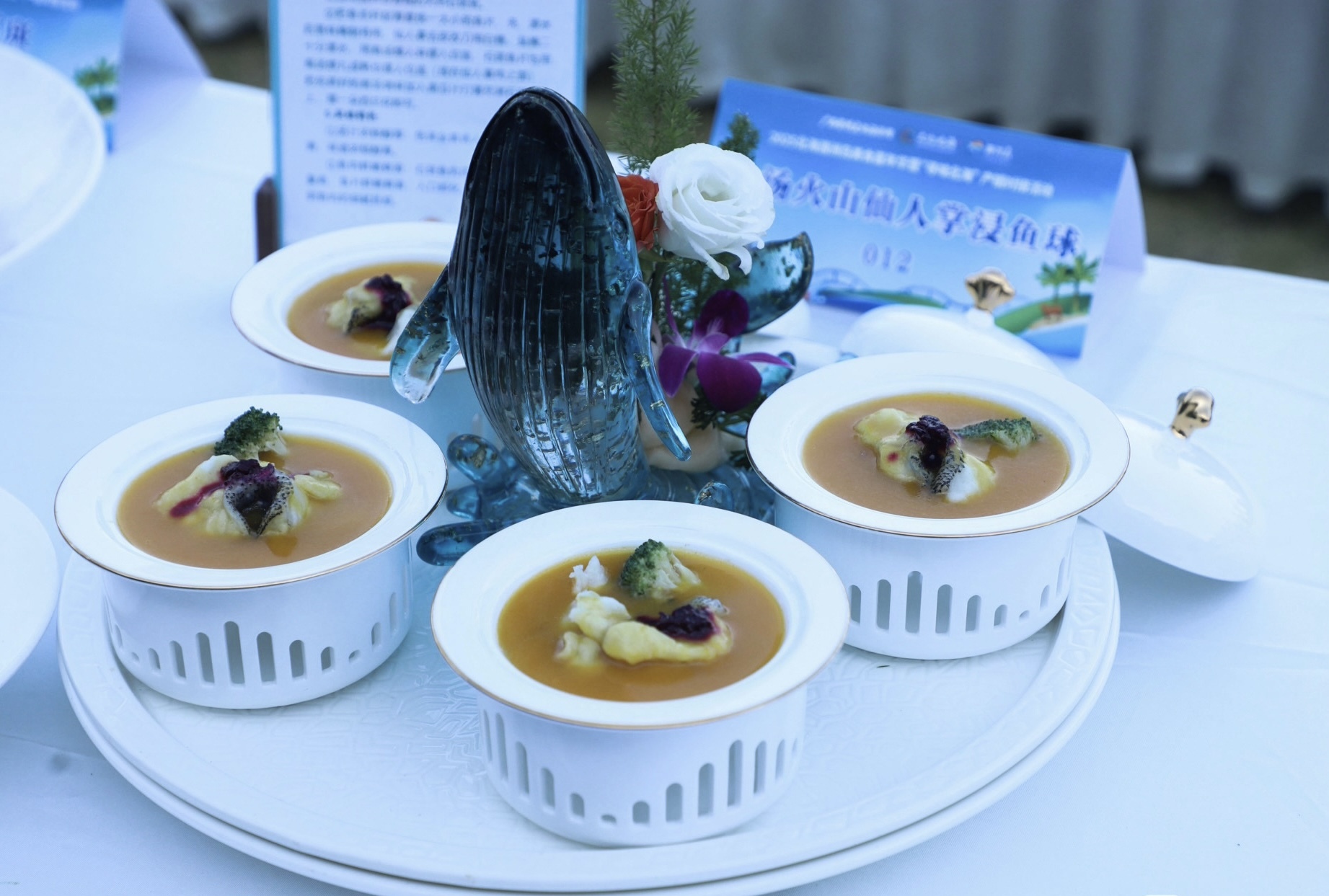“山海药膳”评选现场堪称味蕾与养生的碰撞,岛上餐饮单位以火山岛特色食材为基础,融合中医食疗精髓,创作出美味、养生的创意药膳。最终,“五指毛桃鲍鱼香蕉鸡汤”“香麻拔丝山药”“万物生长”等菜品获得佳绩。据悉,部分获奖菜品将由官方指定团队拍摄专属宣传片,通过多渠道线上传播,为岛民提供精准的中医食疗指引,也为游客标注独特的寻味坐标,是探索“后厨变药房,美食即良方”文旅融合新实践的生动载体。