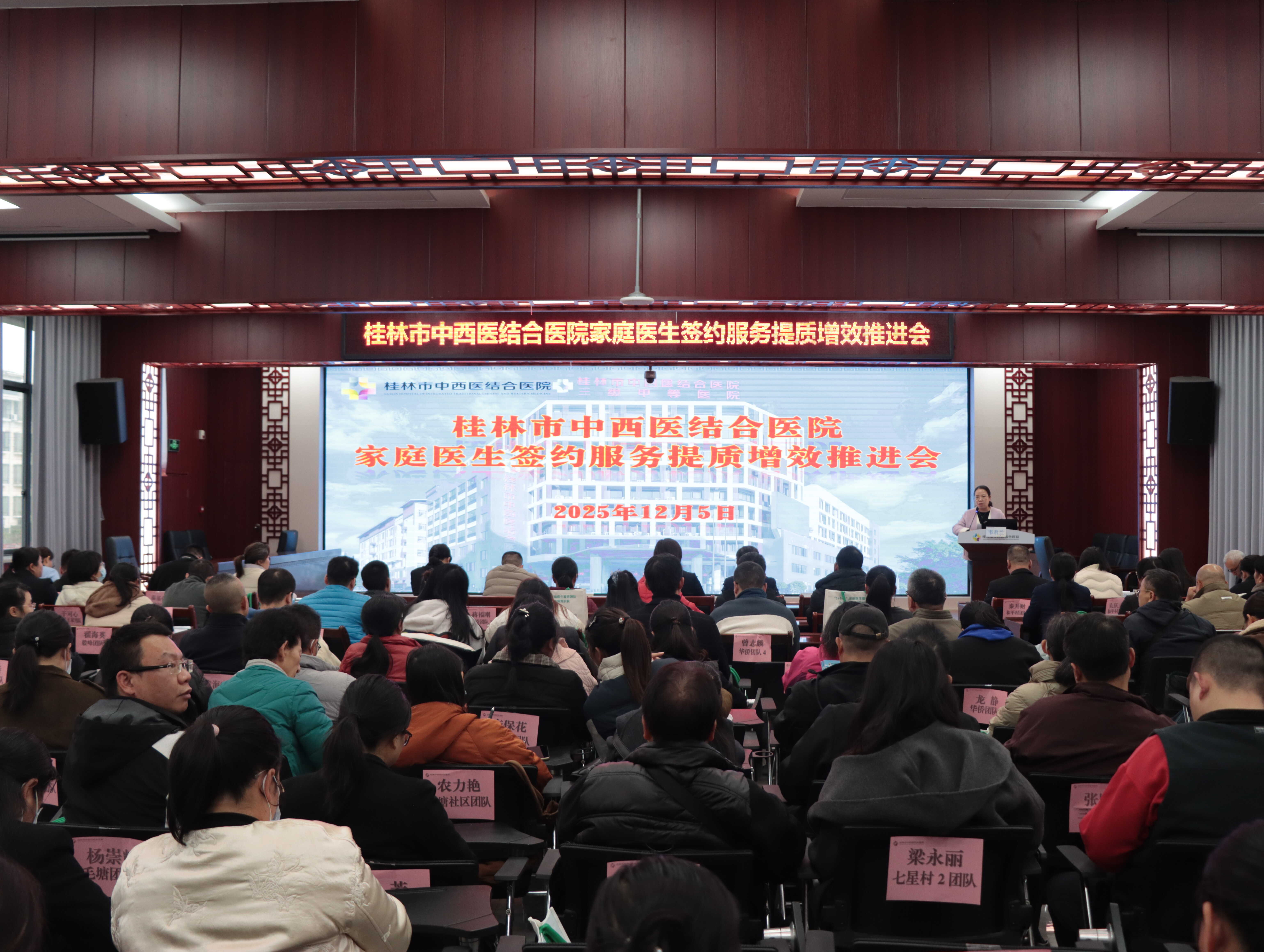 为加快优质医疗资源下沉步伐,全面提升基层医疗卫生服务能力,近日,桂林市中西医结合医院组织召开家庭医生签约服务提质增效推进会。相关医疗卫生单位负责人,以及52个家庭医生“1+1+1”家庭医生服务团队代表160多人齐聚一堂,共同探讨家庭医生签约服务高质量发展路径。