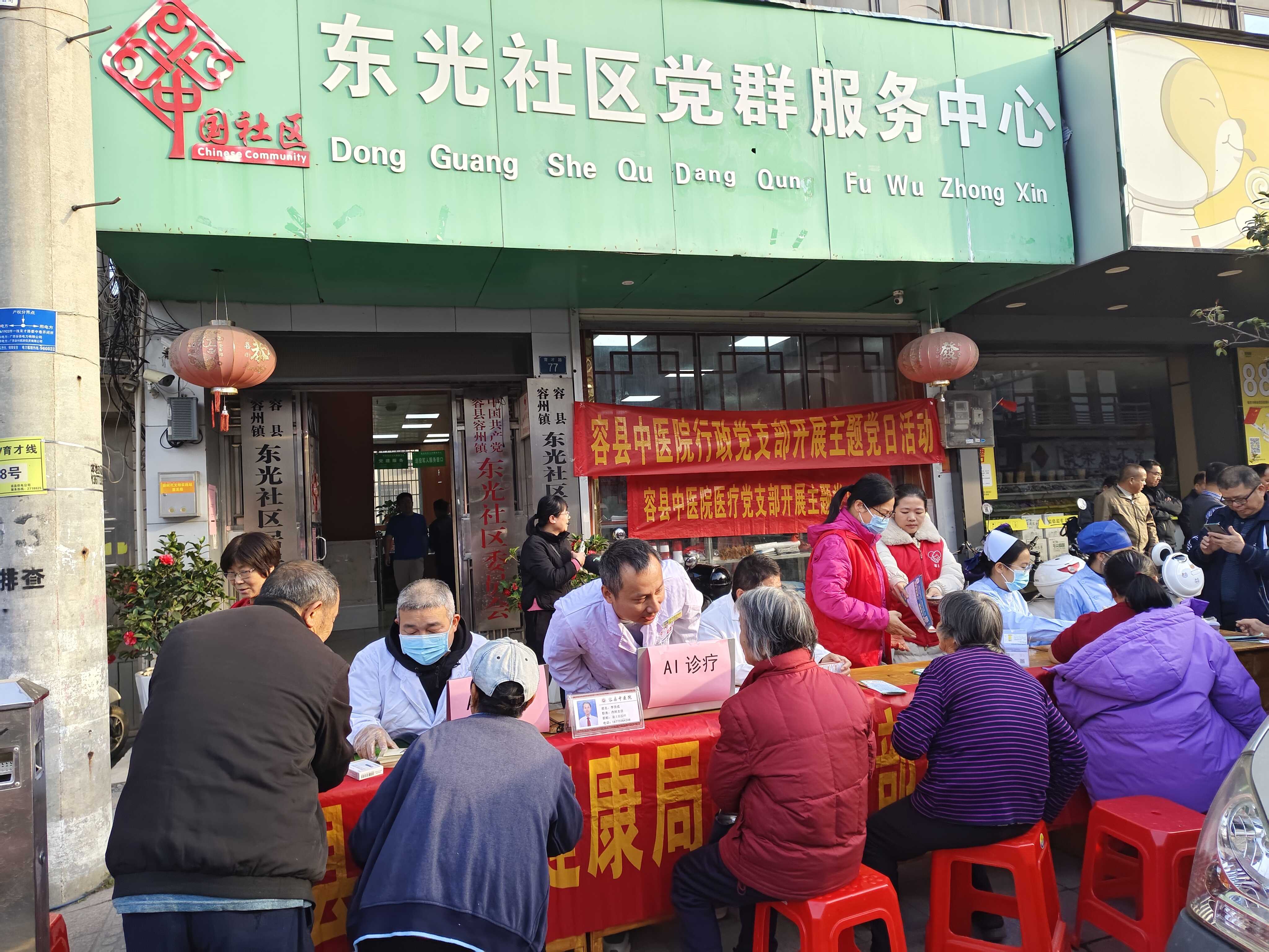 为深入践行“以人民健康为中心”的发展思想,充分发挥基层党组织战斗堡垒作用与党员先锋模范作用,推动中医药传承创新成果惠及千家万户,2025年12月30日上午 ,容县中医医院行政党支部与医疗党支部联合组建党员骨干及中医专家团队,走进容州镇东光社区,开展“智慧中医暖民心”黄煌经方AI诊疗服务活动,以“免费中医体质辨识+经方推荐+健康咨询+基础检查”的一站式服务,让现代科技与传统中医智慧深度融合,为社区居民送上贴心健康守护。