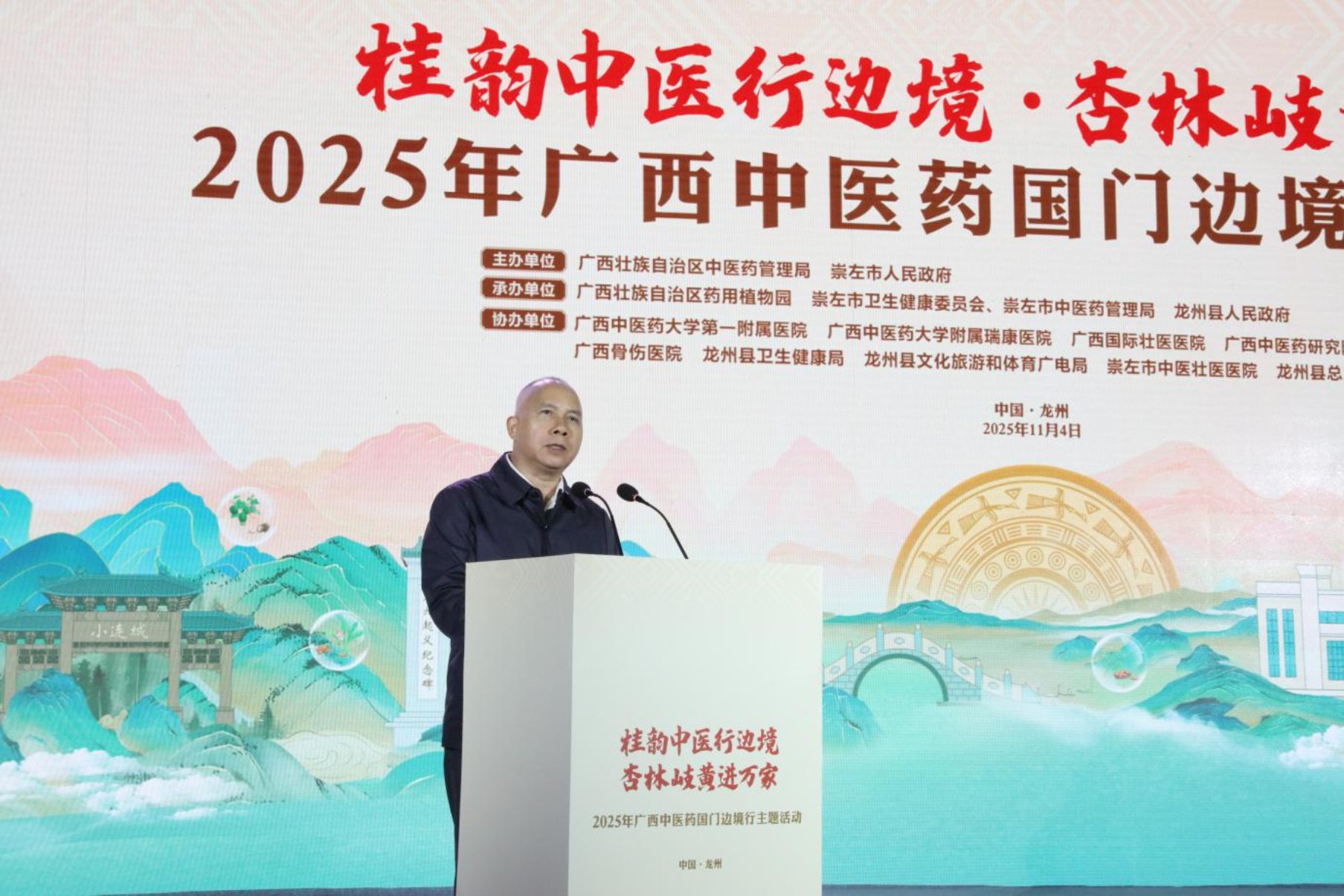 11月4日,2025年广西中医药国门边境行主题活动在崇左市龙州县红八军纪念广场正式启动。自治区卫生健康委党组成员,自治区中医药局党组书记、局长黎甲文,崇左市人民政府二级巡视员阮立平出席启动仪式并致辞。龙州县人民政府副县长莫琪海主持活动。