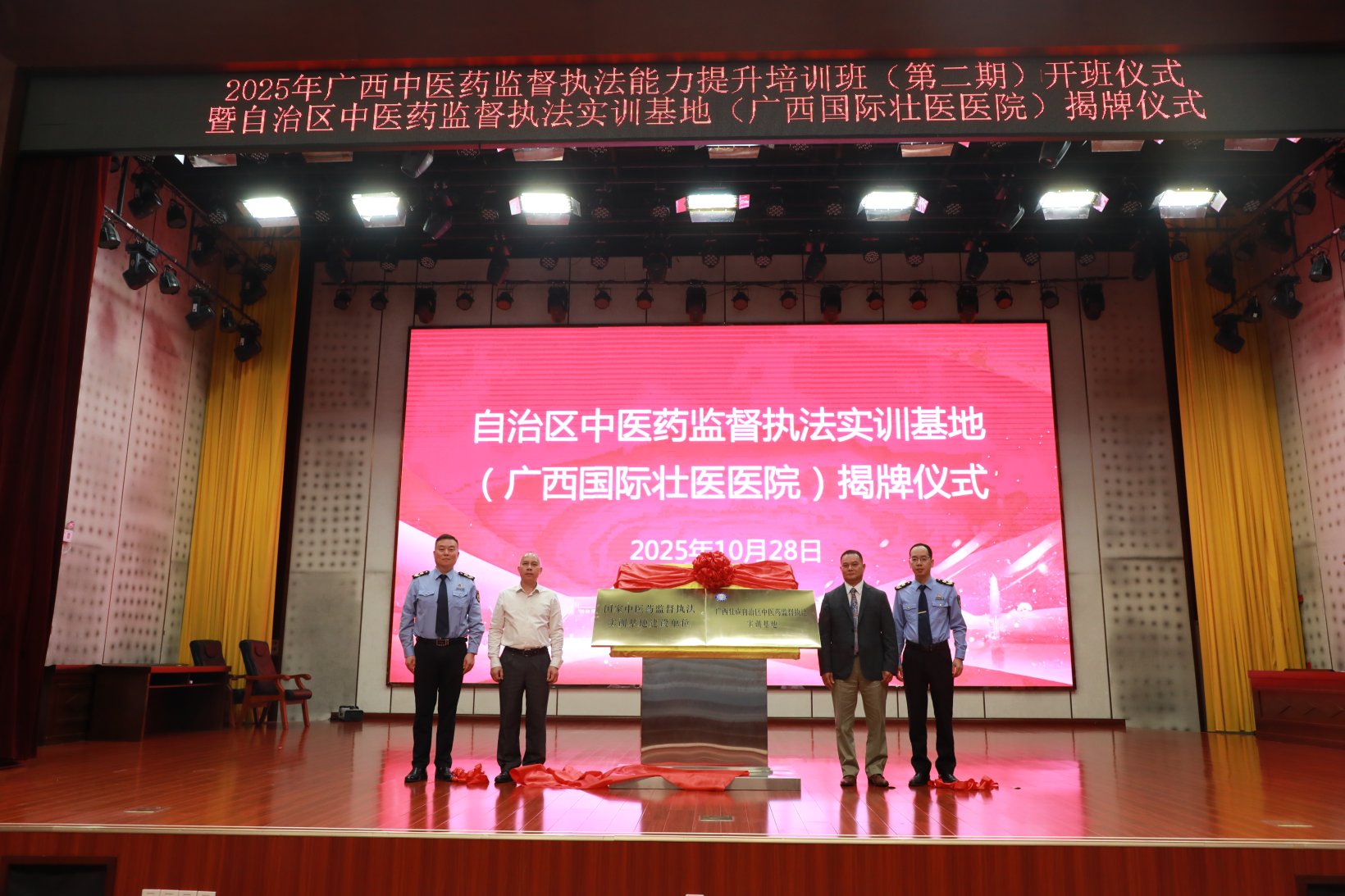 10月27日—31日,2025年广西中医药监督执法能力提升培训班(第二期)在南宁举办,开班仪式期间,举行自治区中医药监督执法实训基地(广西国际壮医医院)揭牌仪式。自治区卫生健康委党组成员,自治区中医药局党组书记、局长黎甲文出席培训班开班仪式暨实训基地揭牌仪式并讲话。