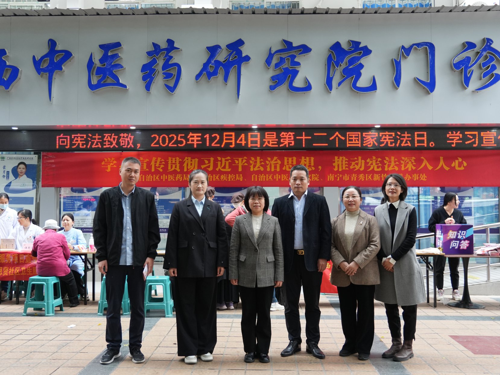 2025年12月4日是第十二个国家宪法日,自治区中医药局、自治区疾控局、自治区中医药研究院、南宁市青秀区新竹街道办事处,共同开展“12·4”国家宪法日主题宣传活动。自治区中医药局、自治区疾控局相关处室,以及自治区中医药研究院负责同志参加活动。