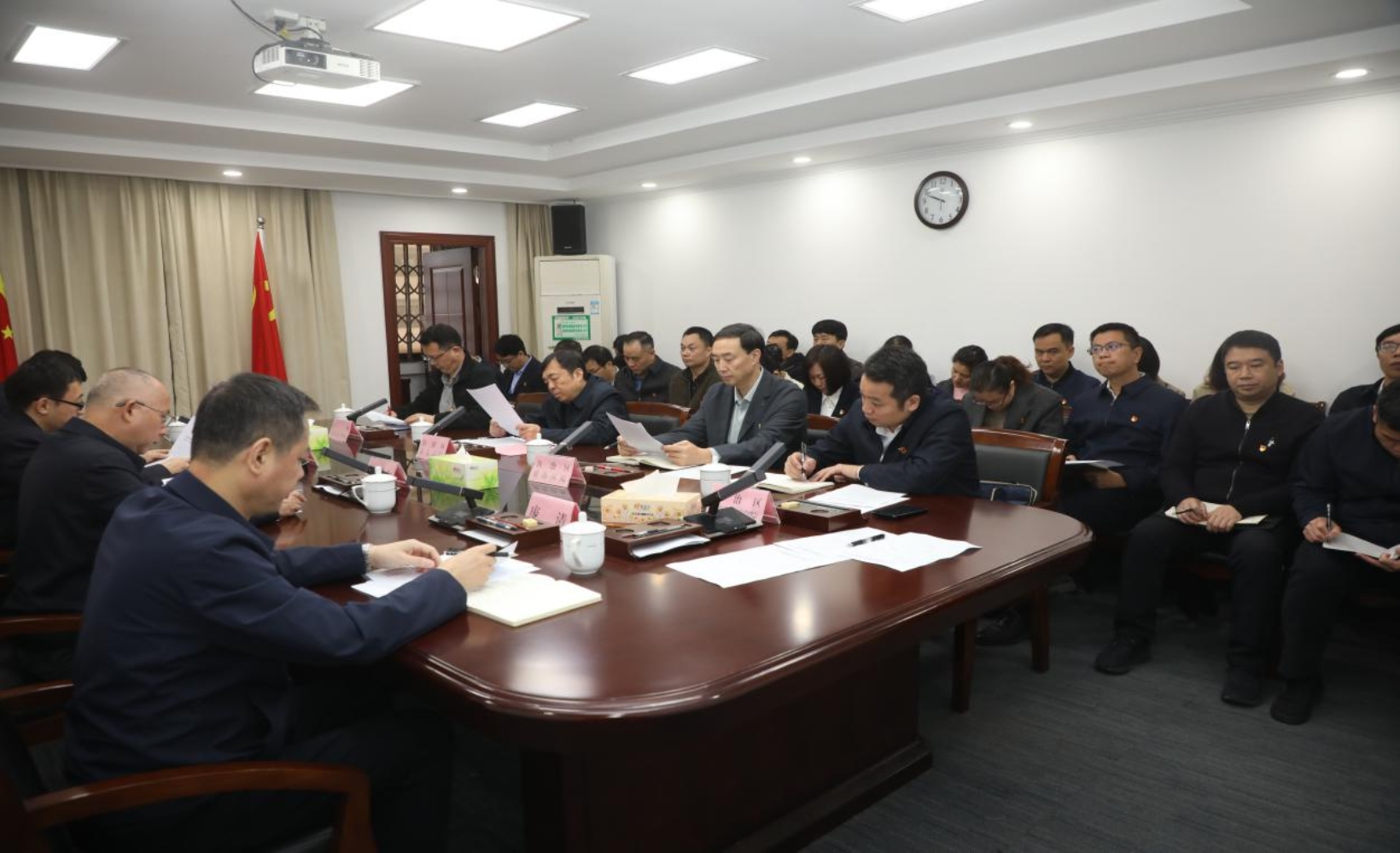 1月19日上午,自治区中医药局召开2025年度民主生活会谈心谈话暨党风廉政建设例行谈话。自治区卫生健康委党组成员,自治区中医药局党组书记、局长黎甲文主持会议并讲话;局党组成员、副局长潘霜、庞清同志传达有关会议(文件)精神;驻委纪检监察组二级调研员张昌寿同志列席会议。