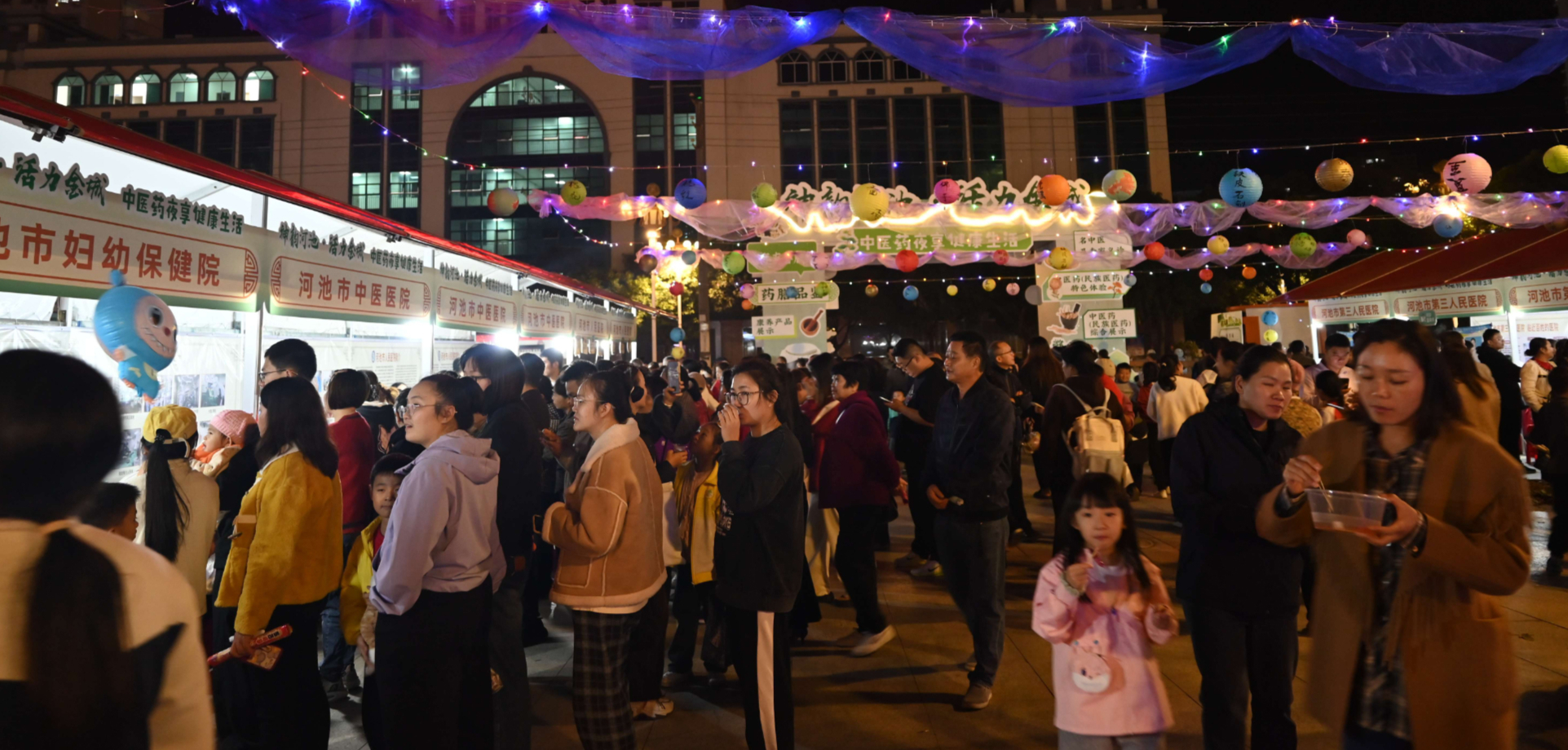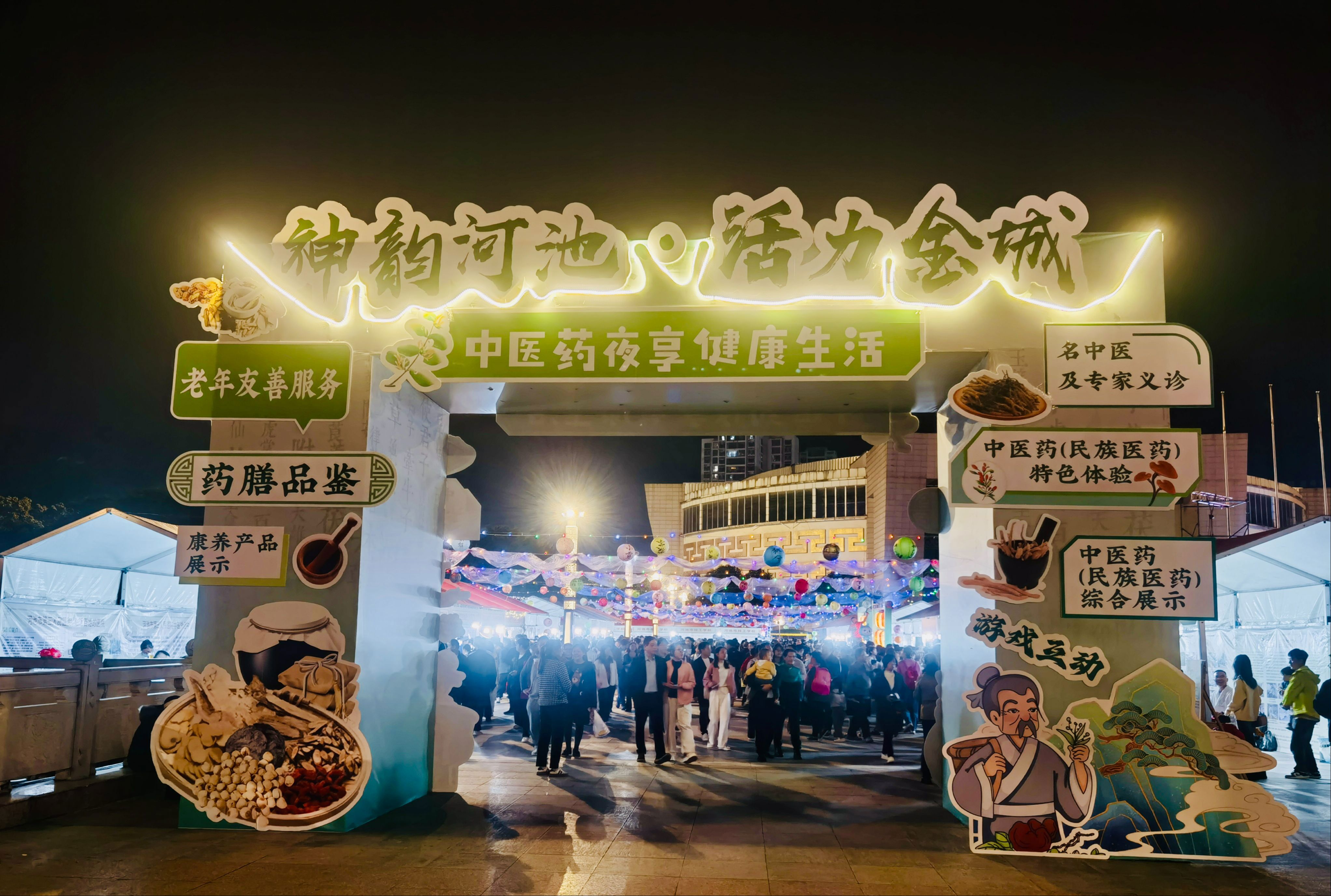 华灯初上,药香氤氲。11月14日至15日晚,以“神韵河池·活力金城”为主题的中医药夜享健康生活集市在河池市金城江区文体中心广场(体育广场)热闹启动。这场将传统中医药智慧与市井烟火气深度融合的特色活动,让市民在休闲夜色中零距离触摸中医魅力,为金城江的夜间经济注入了健康活力。
