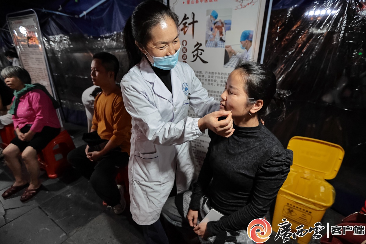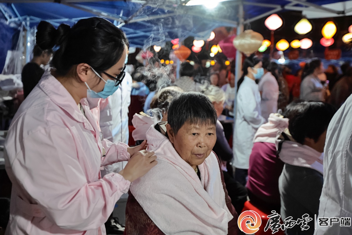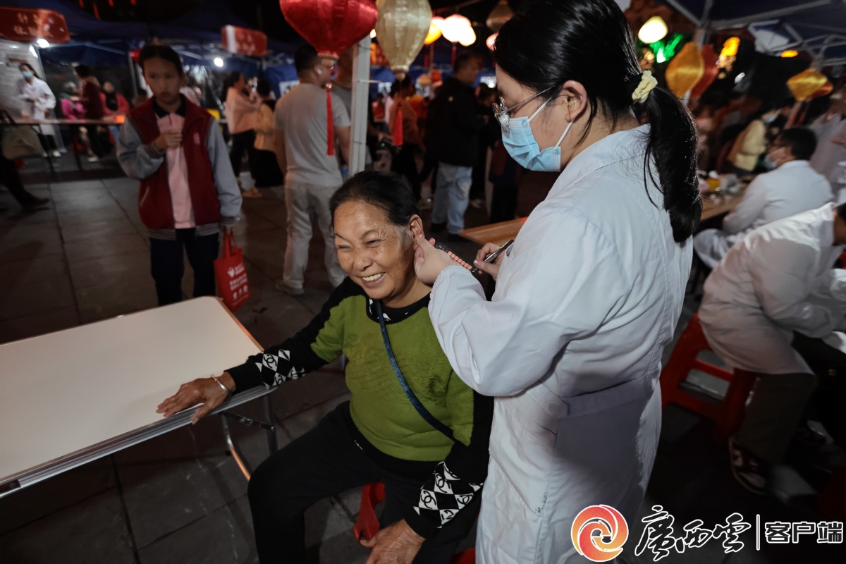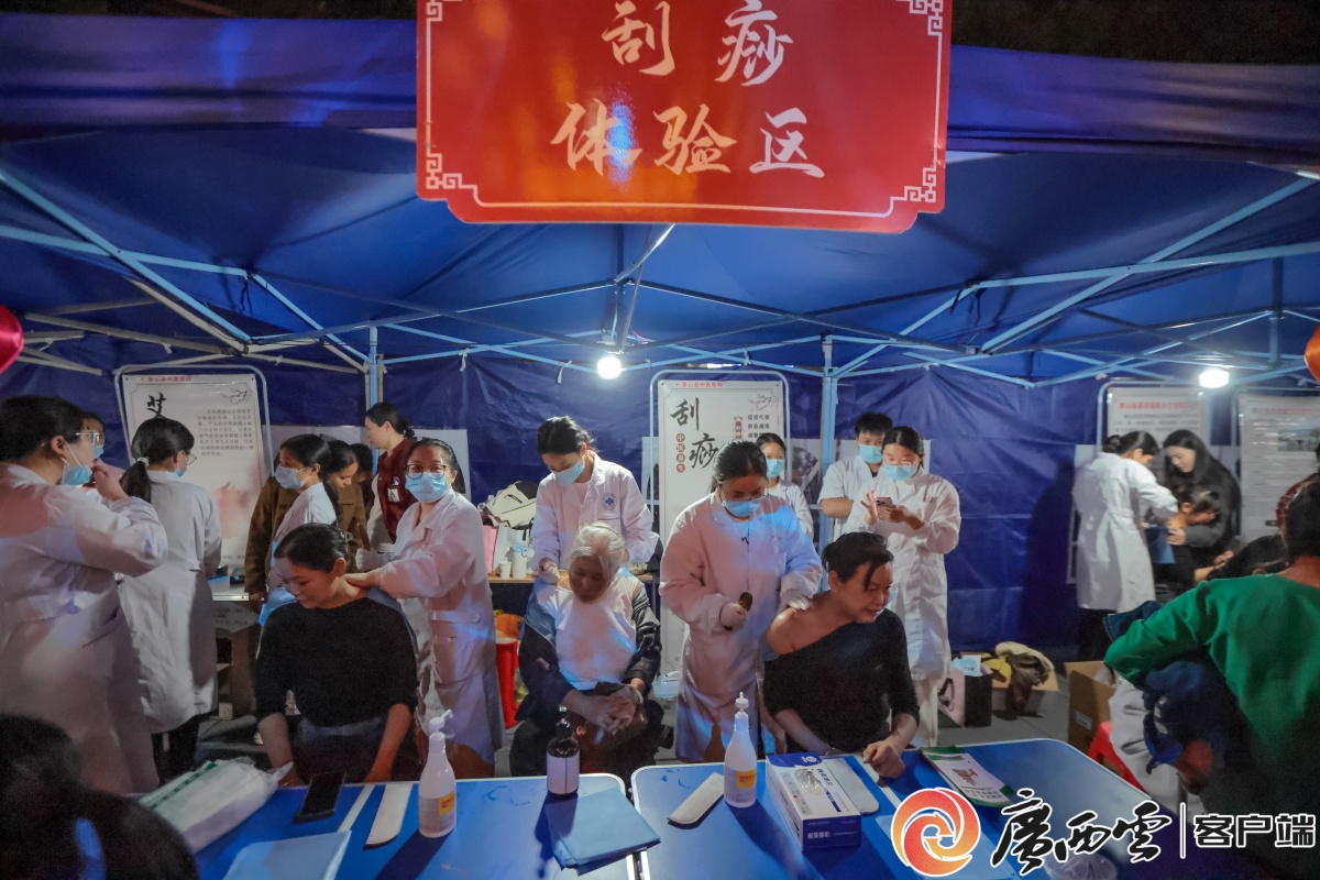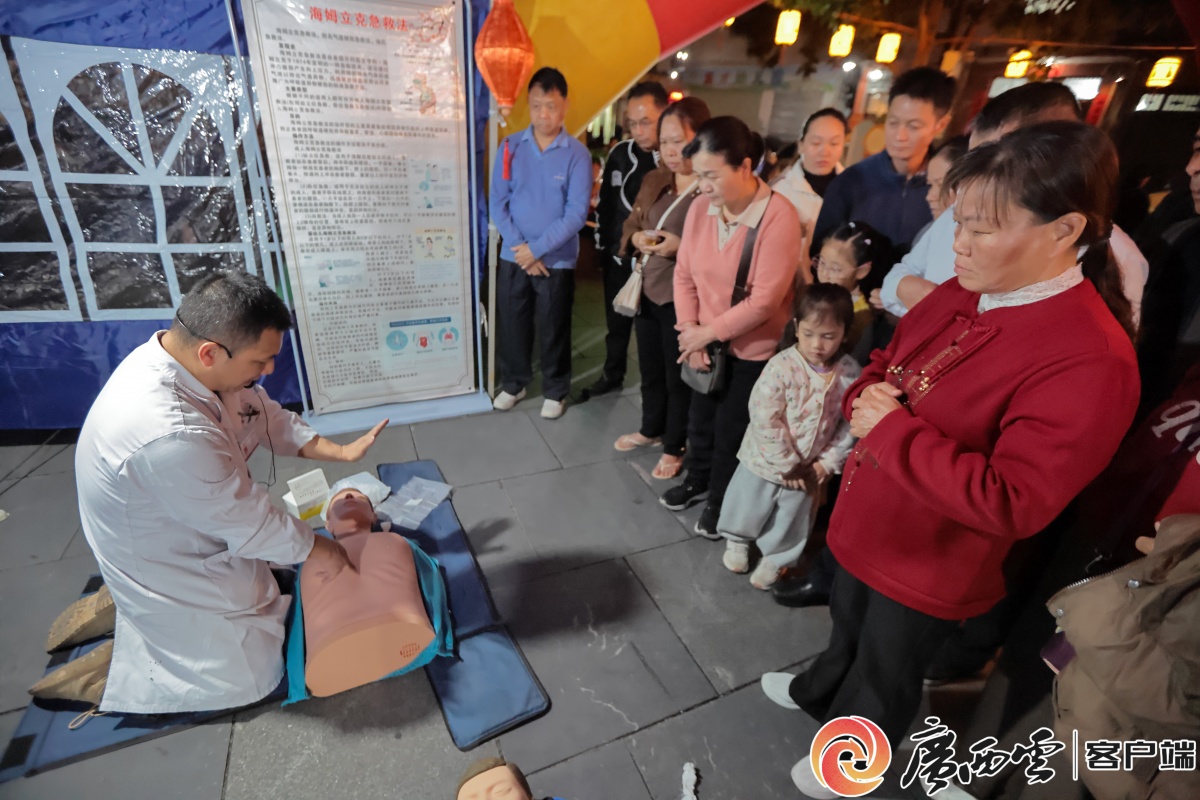 11月14日晚,梧州市蒙山县在长寿阁广场举办中医药夜市文化活动,吸引众多市民前来近距离感受中医药的独特魅力。