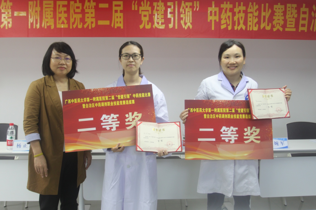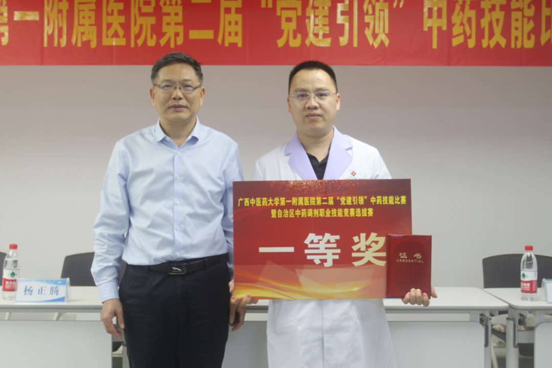 经过理论及技能操作环节的激烈比拼,最终比赛决出一等奖1名、二等奖2名、三等奖3名。来自东葛院区中药库王志强夺得桂冠,将代表广西中医药大学第一附属医院参加自治区中药调剂职业技能竞赛。